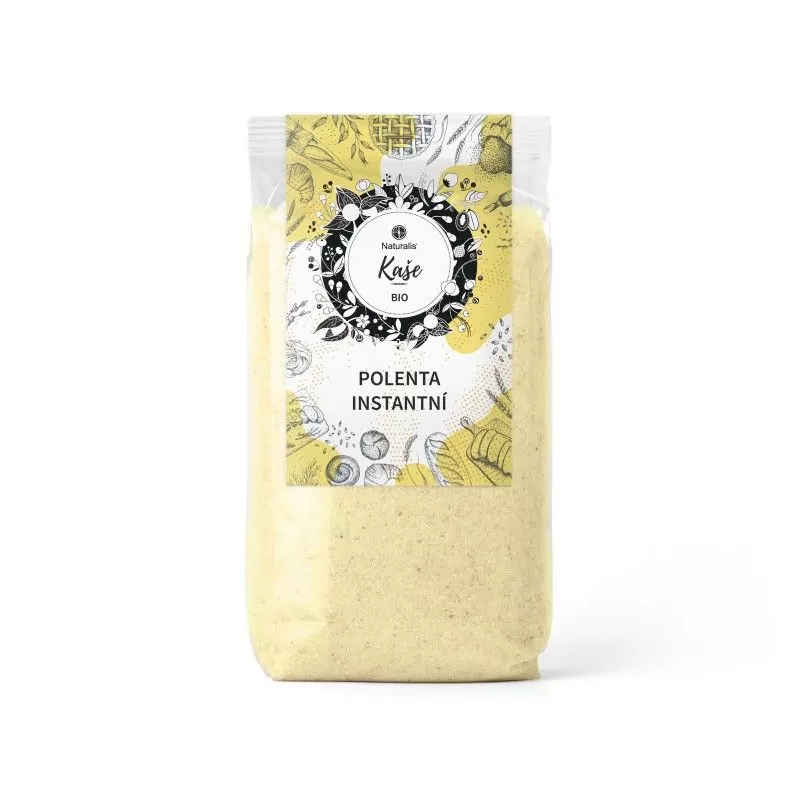 Polenta je název pro kukuřičnou kaši, která se tradičně připravuje v severní Itálii a v zemích jihovýchodní Evropy. Polenta oproti běžné kukuřičné mouce (kaši) nepotřebuje dlouhou dobu vaření. Běžná kukuřičná kaše je uvařená do 45 minut (což je relativně dlouho). Proto se vyrábí také polenta instantní, kde krupice byla tepelně ošetřena párou. Pak jen stačí cca 1 minuta a je hotová. Kukuřice (z které je polenta vyráběna) je známý a mnohými oblíbený druh obiloviny. Polenta je opravdu všestranný pomocník v kuchyni. Můžete ji používat na všechny činnosti jako klasickou pšeničnou mouku. Můžete s ní dokonce obalovat řízky, tofu či libovolnou zeleninu. Můžete s ní zahušťovat omáčky, polévky i jiné pokrmy. Jelikož je přirozeně bezlepková, mohou si na ni pochutnávat i celiaci a všichni ti, kteří trpí nesnášenlivostí lepku. Polenta je ze své podstaty bez jakýchkoli živočišných produktů. Proto si na ní mohou bez obav pochutnat i vegani. Její výhodou je snadná a rychlá příprava i univerzálnost použití. Její příprava je extrémně rychlá. Stačí ji nasypat do hrnce s vodou, lehce zahřát (ne moc, aby se nespálila) a míchat cca 1 minutu. To je vše. Po cca 1 minutě bude polenta připravena k přímé konzumaci.