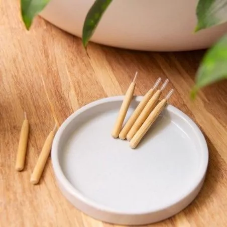 Bambusový mezizubní kartáček 0,60 mm Hydrophil - 6 ks je vyroben šetrnou metodou s úctou k přírodě. Na jeho zhotovení byly použity jen přírodní ekologické materiály. A to jak na štětiny, tak i na rukojeť. Díky pevným materiálům Vám dlouho vydrží. Ideální je pro milovníky konceptu zerowaste, neboť vydrží léta a už nikdy nebudete potřebovat konvenční - plastový. Vhodný je na denní čištění zubů. Je příjemný na dotek i v ústech.