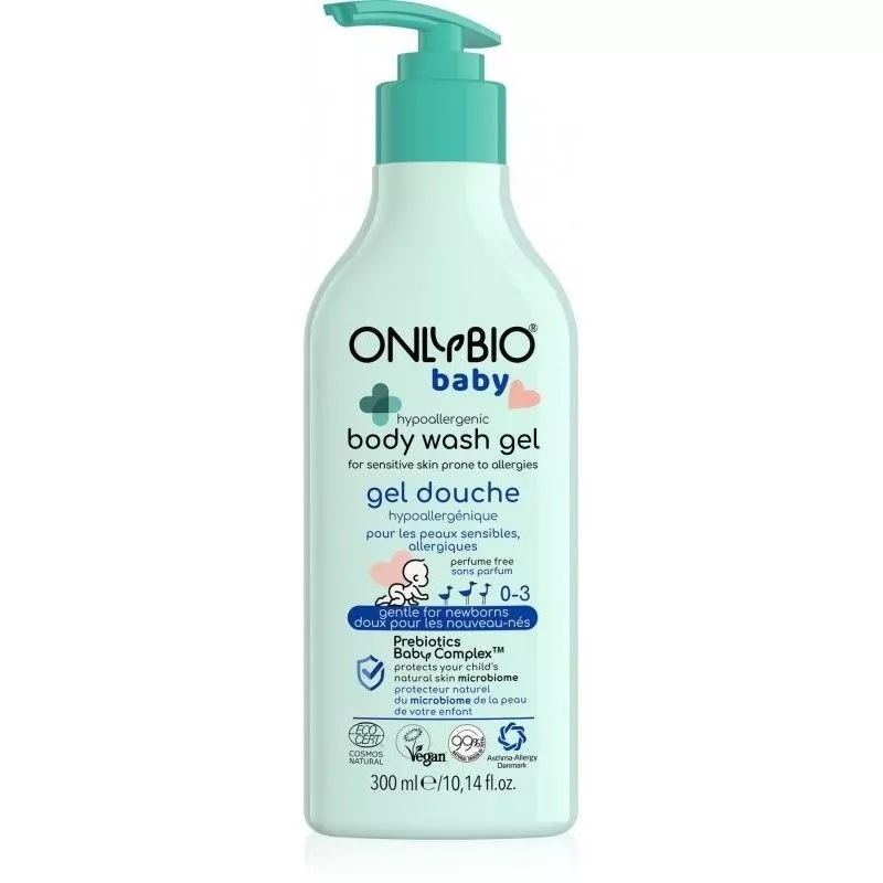 Hypoalergenní mycí gel zklidní podrážděnou pokožku i těch nejmenších miminek náchylných k alergiím a ekzémům. Extra jemné složení s unikátním komplexem prebiotik prospívá mikrobiomu děťátka a sezamový olej zanechá citlivou pokožku vyživenou a hebkou. Gel jemně pění a hodí se pro škvrňata od narození do 3 let. V OnlyBio ho vyvinuli jedinečnou technologií biorafinace surfaktinu z řepky z lokálních zdrojů. Za jeho kvalitu ručí certifikace Ecocert, za ultra šetrnost Asthma Allergy Denmark a doporučuje ho i Polská dermatologická společnost.