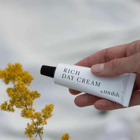 Bohatý denní krém By Mukk je výsledkem inovativního vývoje a péče o pleť inspirované místními tradicemi a přírodními surovinami. Výrobek je vyráběn na ostrově Saaremaa s důrazem na udržitelnost a ekologický přístup. Jeho složení obsahuje přírodní ingredience jako meruňkový olej, jojobový olej, vitamín E a další, které poskytují pleťi intenzivní hydrataci a ochranu. Krém je vhodný pro citlivou, suchou a zralou pleť a pomáhá eliminovat negativní účinky modrého světla. S probiotickou technologií a bez syntetických přísad je tento krém šetrný k pokožce i životnímu prostředí. Obohaťte svou péči o pleť s tímto krémem, který nabízí zářivou, vyživenou a elastickou pleť bez kompromisů.