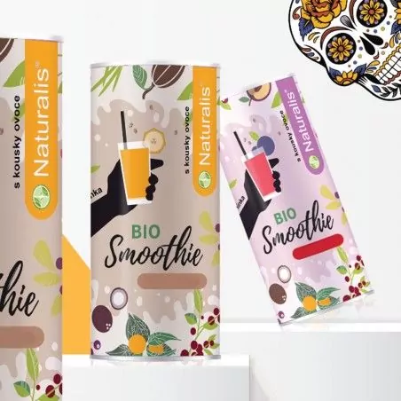 Smoothie Naturalis dodáváme ve 100% přírodní formě. Certifikáty jakosti typu Vegan, BIO, GMO Free a jiné jsou samozřejmostí. Naše smoothie obsahuje jen a pouze šetrně vypěstované a nijak neupravené složky. Nepřidáváme do něj ani zlomek rafinovaného cukru, barviv, konzervantů ani jiné látky, které by ho mohly biť jen trošku znehodnotit. Smoothie je přirozeně bezlepkové, neobsahuje laktózu ani jiné alergeny. Jsou tedy vhodné i pro citlivé jedince. Smoothie balíme do uzavíratelných sáčků, který vložíme do praktických dóz. Ty mají za úkol dokonale ochránit obsah před okolními vlivy jako je prach, vlhkost či světlo.