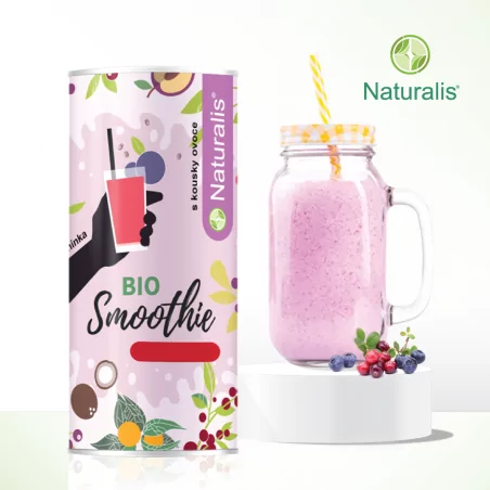 Smoothie Naturalis dodáváme v čisté, 100% přírodní formě bez jakýchkoli dalších nadbytečných úprav. Certifikáty jakosti jako jsou Vegan, BIO, GMO Free a jiné jsou samozřejmostí. Naše smoothie obsahuje jen šetrně vypěstované suroviny. Nepřidáváme do něj ani zlomek rafinovaného cukru, žádná barviva, konzervanty ani jiné látky, které by ho mohly jakkoli znehodnotit. Smoothie je přirozeně bezlepkové, neobsahuje laktózu, geneticky modifikované složky ani jiné alergeny. Je tedy vhodné i pro citlivé jedince. Smoothie balíme do uzavíratelných sáčků, které následně vkládáme do praktických dóz speciálně navržených tak, aby mohly přijít do styku s potravinou. Ty mají za úkol dokonale ochránit obsah před okolními vlivy jako je prach, vlhkost, alergeny či světlo.