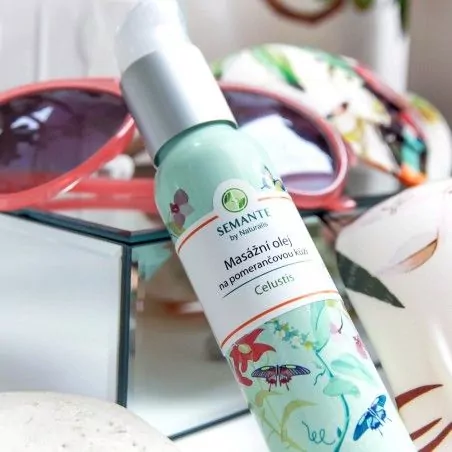 Masážní olej na pomerančovou kůži "Celustis" BIO od značky Semante obsahuje velmi vysoké procento přírodních za studena lisovaných BIO olejů. Díky našemu jedinečnému složení tato ověřená receptura napomáhá likvidaci tuku v tukových polštářích, zvyšuje pružnost pokožky, prohřátí i její prokrvení. Nespornou výhodou je 100% vstřebatelnost oleje ve velmi krátkém čase. Obsah přírodních vitaminů a olejů prokrvuje pokožku do hloubky a díky tomu ji vyhlazuje a zvyšuje její elasticitu. Náš masážní olej nedostal název "Celustis" náhodou. Vysloužil si ho díky svým schopnostem vyhlazování pokožky a zmírňování projevů celulitidy. Mimo jiné se hojně využívá i při výskytu strií, jizviček či jiných kožních "deformací".