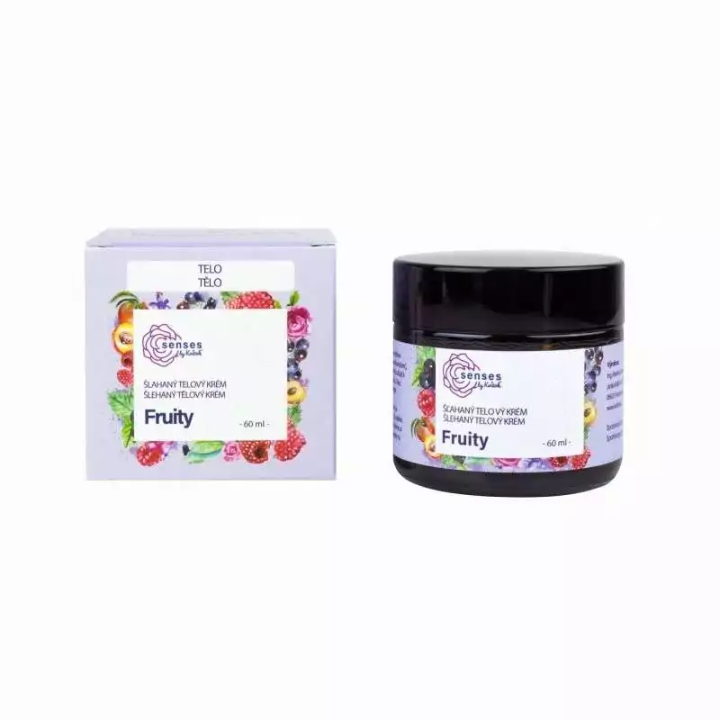 Jemný šlehaný krém Fruity vděčí za své mimořádné pěsticí vlastnosti vysokému podílu bambuckého másla, mandlového oleje a macerátu z měsíčkových květů. Největší službu prokáže suché, namáhané a popraskané pokožce, třeba na loktech nebo patách. Ódy na něj budou pjet i nastávající maminky, posílí totiž elasticitu pokožky, a zabrání tak vzniku strií. Sladce ovocná vůně malin, černého rybízu a vanilky bude hvězdou letní sezóny, hravě ale rozsvítí i ty nejsychravější dny.