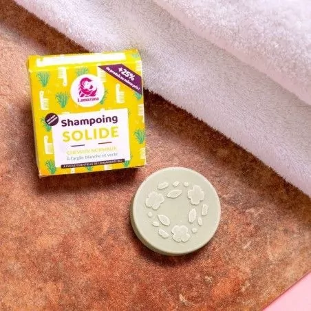 Tuhý šampon pro normální vlasy s bílým a zeleným jílem Lamazuna - 70 g byl vyroben šetrnou metodou s úctou k přírodě. Nejsou v něm přidány chemické látky, dobarvovadla, syntetické konzervanty ani jiné látky, které by ho mohly znehodnotit. Obal je vyroben z recyklovatelného materiálu, který uchrání jeho vzácný vnitřek před okolními vlivy, ale zároveň nezatěžuje přírodu.